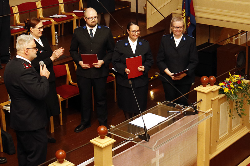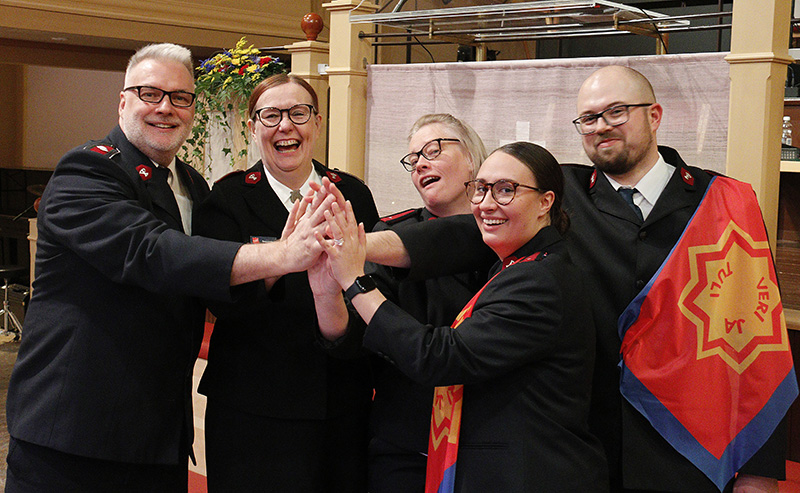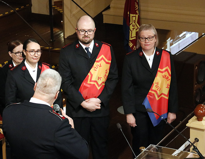 Lokakuun lopulla Pelastusarmeijalla oli aihetta iloon ja juhlaan, kun vietettiin peräti kolmen kadetin upseerivihkimystä. Pyhityksen heijastajat -kadettirenkaan Enni ja Robert Becker sekä Taina Kaikkonen valmistuivat luutnanteiksi Pelastusarmeijan Temppelissä.