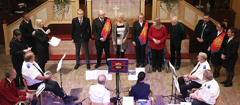 Lauantaina 28.10. Pelastusarmeijan jäseniä ja ystäviä oli saapunut seuraamaan Enni ja Robert Beckerin ja Taina Kaikkosen upseerivihkimystä. Tilaisuus alkoi kadetit esittelevällä kuvaesityksellä Temppelin soittokunnan johdattaessa tunnelmaan. Pelastusarmeijan ylisihteeri, majuri David Kotrikadze toivotti kaikki lämpimästi tervetulleeksi tähän siunattuun tilaisuuteen. Tätä seurasi upseerikoulun saapuminen lavalle – kadettien kulkue Pelastusarmeijan lipun liehuessa tuntuu aina yhtä juhlalliselta.