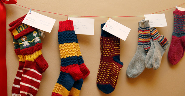 Seuraavaksi juhlassa palkittiin villasukkasuunnittelukilpailun voittajat. Marjatta Kariniemi voitti kilpailun. Kilpailussa palkituista henkilöistä ja voitokkaista sukista kerromme lisää tulevassa Sotahuudon joulunumerossa.