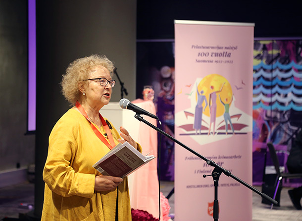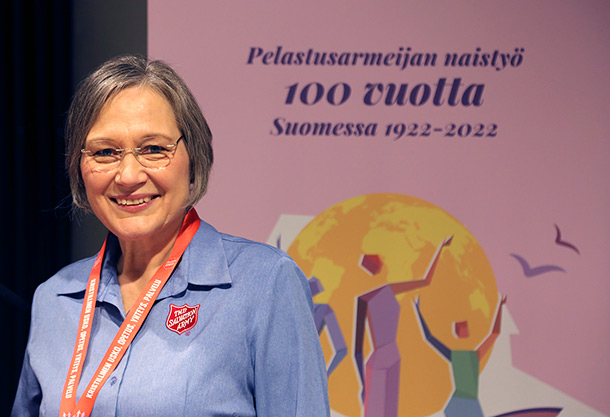 Komentaja kehotti myös kuulijoita olemaan yhteydessä toisiinsa todistusten ja raamattuopetuksen myötä paikallisesti ja digitaalisesti kautta Pelastusarmeija-maailman. Komentajan ajatuksia Pelastusarmeijan naistyöstä voit lukea myös Sotahuudon naistyön juhlanumerosta 10/2022.