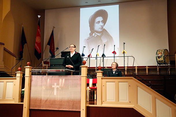 Ylisihteeri, majuri Saga Lippo esitteli Hedvig von Haartmanin, jonka mukaan tämä juhlapäivä on nimetty. Hedvig oli oikea pioneeri, yksi Pelastusarmeijan perustajista Suomessa. Hän aloitti myös Sotahuudon julkaisun Suomessa.