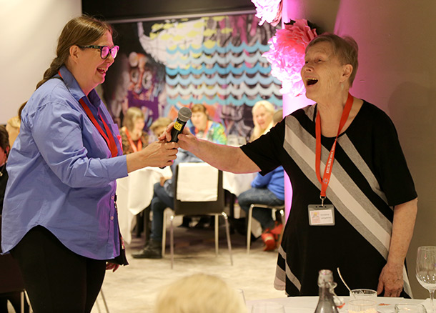 Kapteeni Kaisu Leinon johtaman lauluryhmän kauniin ja koskettavan esityksen jälkeen oli tervehdysten vuoro. Saga Lippo jakoi Suomen evankelisen neuvoston pääjohtajan, Mayvor Wärn-Ranckenin tervehdyksen. Tervehdyksessään pääsihteeri totesi, kuinka tärkeää on, että eri-ikäiset naiset saavat kokoontua yhteen jakamaan hengellisen yhteyden, mutta saamaan myös henkistä tukea ja apua omaan elämäänsä.