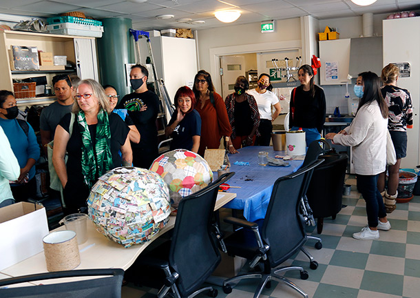 Kaukaisimmat vieraat olivat parikymmenhenkinen havaijilaisten asiantuntijoiden ryhmä, joka kävi tutustumassa Alppikadun ja Väinölän yksiköihin. Sotahuudolla oli ilo olla mukana Alppikadun kierroksella.