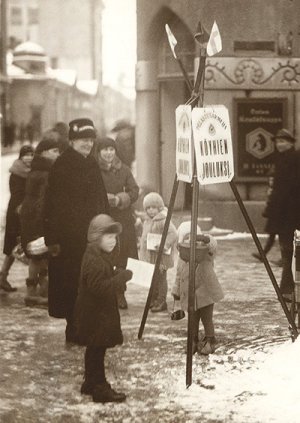 Ja lapset – no tietysti heidän piti olla mukana! ”Isä, mikä tuo on,” sopersi pieni kultakiharainen tyttö isälleen, osoittaen pataa ylioppilastalon lähellä, jossa silloin satuin olemaan vahtina. ”Se on pata, johon kootaan rahaa köyhille jouluksi,” vastasi isä. ”Etta tahtoo myöskin panna sinne.” Juu, Etta sai panna. – Kiitos, pikku Etta!