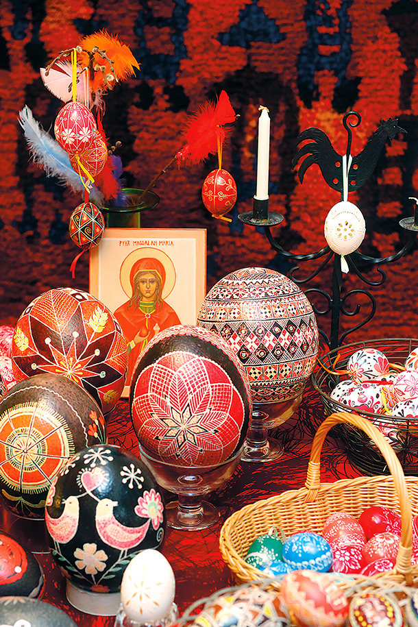 – Ukrainalaisia siirtolaisia on muuttanut paljon Amerikkaan, ja he ovat kirjoittaneet perinteitään muistiin. Ukrainalaiset munat ovat kaikkein koristeellisimpia ja yksityiskohtaisimpia. Niitä kutsutaan nimellä pisanka, joka tarkoittaa kirjoittamista. On uskomus, että jos munasta ei löydy vähintään neljää väriä, se tarkoittaa talon emännän olleen laiska. Sen verran kunnianhimoa piti olla, Ritva naurahtaa ja jatkaa: – Ukrainassa käytetään usein valkoista, punaista ja mustaa. Nämä värit yhdessä kuvaavat ihmisen elämää kokonaisuudessaan – syntymää, elämää ja kuolemaa.
