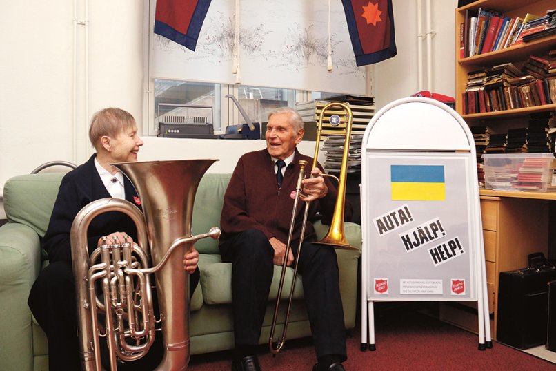 – Olemme kaikki osa 37 500 Pelastusarmeijan kansainvälisen torvensoittajien joukkoa, Viljo hymyilee tyytyväisenä.