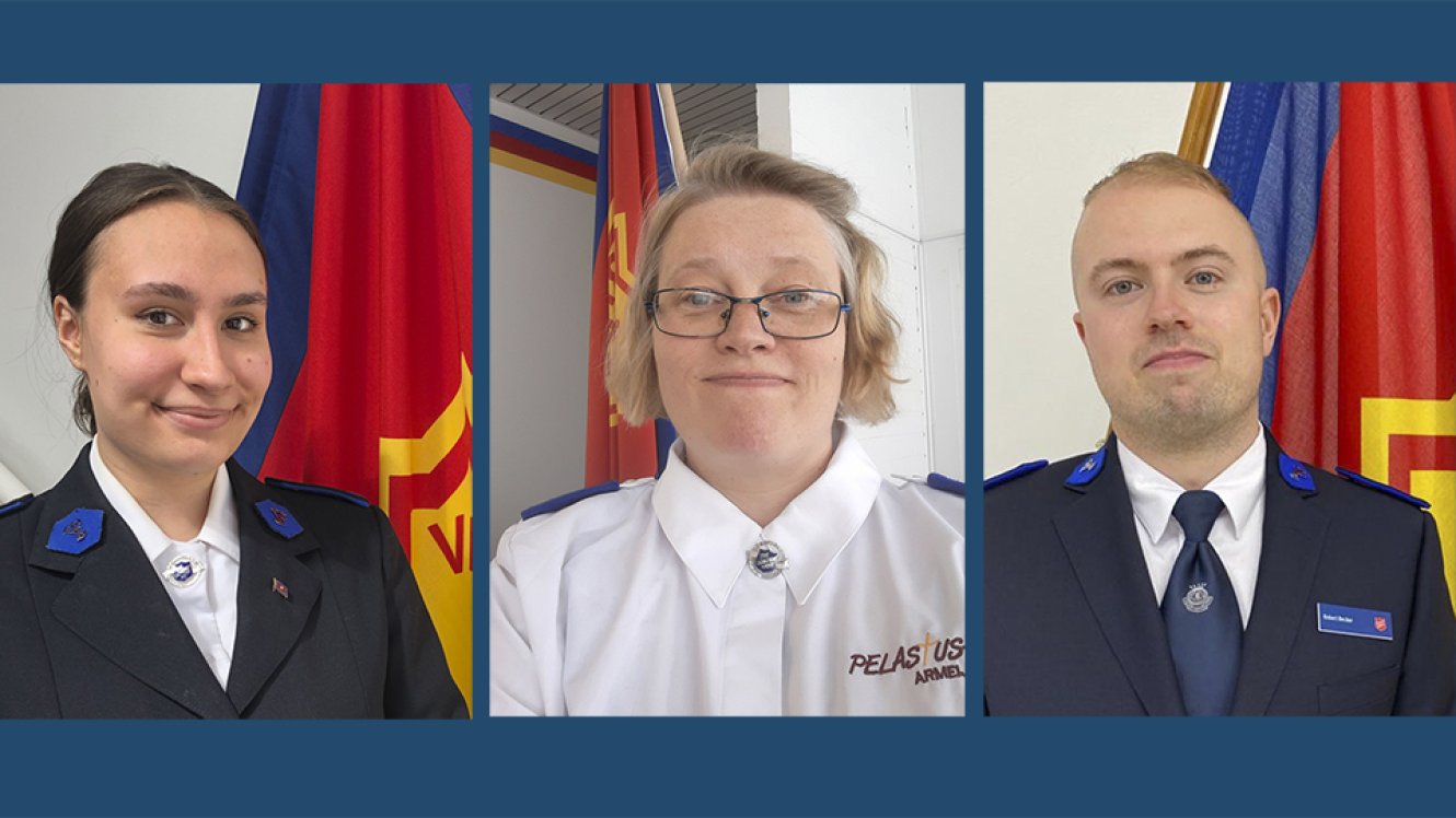 Meillä on ilo kertoa, että Pelastusarmeijan Suomen ja Viron Territoriossa on hyväksytty upseerikoulutukseen Enni Kulmala (Vaasa), Taina Kaikkonen (Lahti) ja Robert Becker (Helsinki). He aloittavat opintonsa syyskuussa 2021.