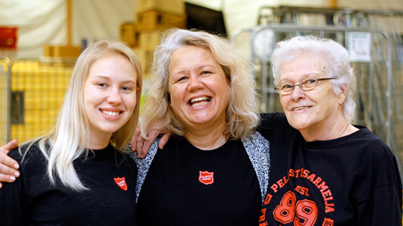 – Tämä on kiitollista työtä, kuten Ritva ja Venla aiemmin sanoivat – saa auttaa ihmisiä. Moni on tullut sanomaan, etteivät tiedä miten selviäisivät, elleivät saisi apua Pelastusarmeijalta. Viime vuonna autoimme täältä käsin 32 000 henkeä. Käsi ihmiselle, sydän Jumalalle!