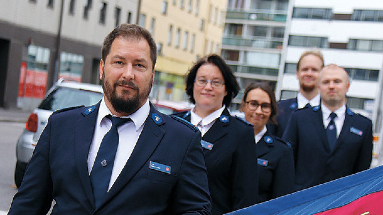 Kadetti Benjamin Hursti vihittiin Pelastusarmeijan upseeriksi Pelastusarmeijan Temppelin osastossa, Uudenmaankatu 40, Helsinki.