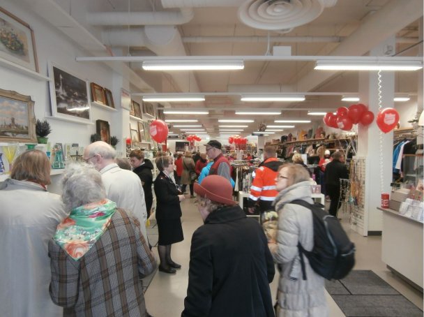 Pelastusarmeijan kierrätystoiminnan uuden kirpputorin avajaiset pidettiin 7.4. Helsingin Myllypuron ostoskeskuksessa.