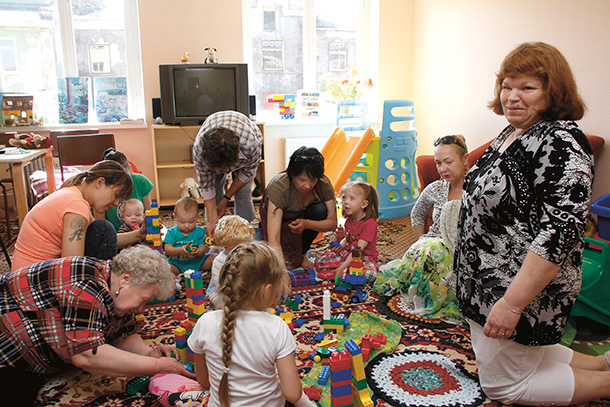 Leikkihetken jälkeen ryhmä jakaantuu kahtia: vanhemmat lapset jäävät Ritan ohjauksessa piirtämään torneja. Äidit kokoontuvat pienimmät sylissään pöydän ympärille kahvittelemaan ja keskustelemaan. Majuri Liudmila esittelee päivän aiheen, kiusaamisen. Liudmila kertoo lasten kohtaavan tänä päivänä paljon kiusaamista. Usein se kertoo ongelmallisista kotioloista, rakkauden puutteesta ja etäisyydestä. Kristittyinä meidän pitää osoittaa myötäelämisen kykyä lähimmäisenrakkaudella ja kristillisillä arvoilla.