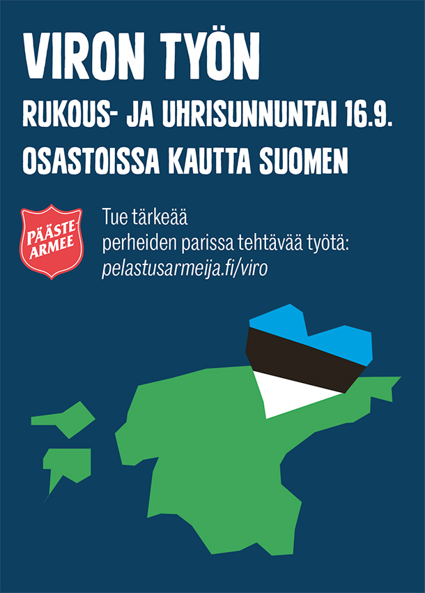 Syyskuun 16. päivänä vietetään Viron työn rukous- ja uhrisunnuntaita, jolloin rukoillaan ja kerätään varoja Pelastusarmeijan tekemälle työlle Virossa. Erityisenä kohteena ovat lapset ja nuoret. Millaista nuorisotyötä Viron Pelastusarmeija tekee? Sotahuuto kävi tutkimassa tilannetta ja tutustumassa vauvalauluun Narvassa.
