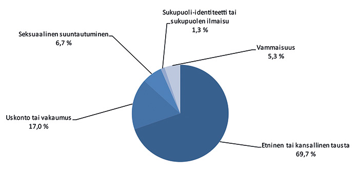 Lähde ja kaavio: Rauta, Jenni. Poliisin tietoon tullut viharikollisuus Suomessa 2018. Poliisiammattikorkeakoulun katsauksia 15/2019.