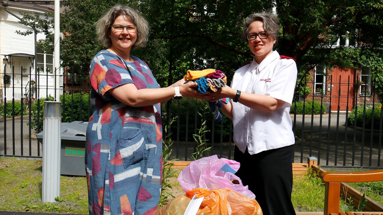 Pelastusarmeijan perhe- ja aikuistyön Sielunlämmittäjät-projektin puitteissa on tänä keväänä neulottu villasukkia Nummelan Lasten lomakodille. 16. kesäkuuta lomakodille luovutettiin noin 350 paria villasukkia.