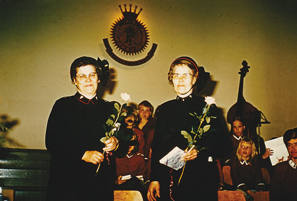 Menneinä aikoina Pelastusarmeijalla oli oma ompelimo, jossa virkapuvut valmistettiin. Terttu teki pitkän uran siellä ensin ompelijana, sitten ompelimon johtajana.
